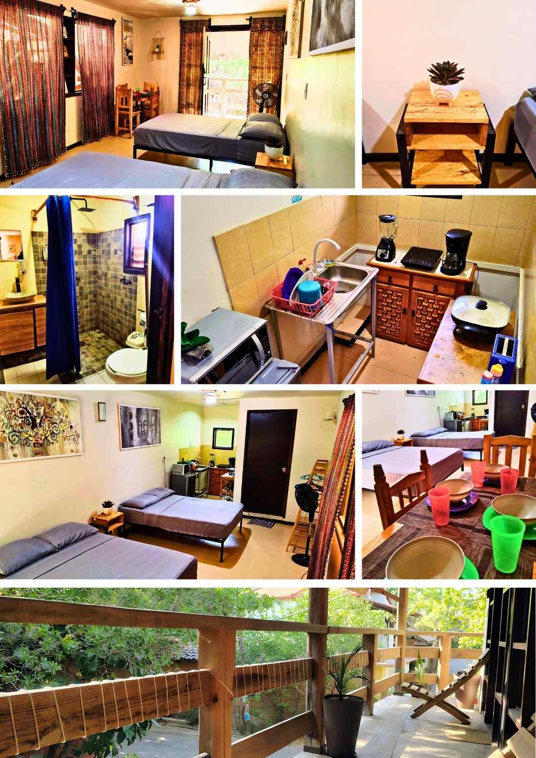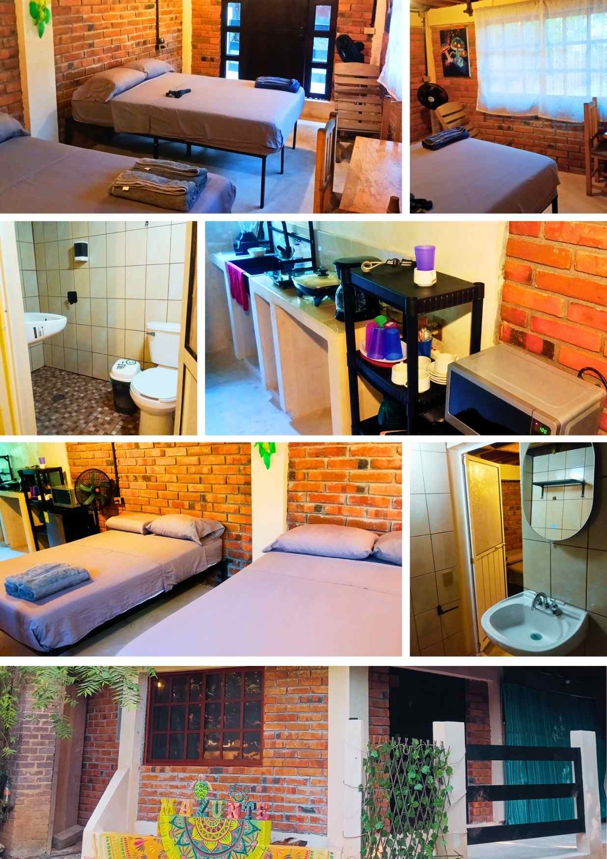 Dos camas matrimoniales te envuelven en descanso profundo. La suave luz natural entra por ventanales sin vidrio, solo mosquitero protector, dejando que la brisa marina te arrulle. La vista hermosa hacia la calle desde adentro te conecta con la vida del pueblo: niños jugando, bicicletas pasando, el pulso cálido de Mazunte. Ventiladores mantienen frescura serena.